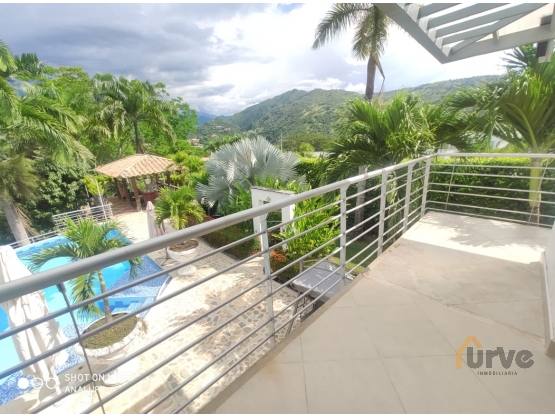 Venta de exclusiva Casa Campestre moderna de dos nivieles en San Jeronimo, Antioquia. Ubicada en parcelacion cerrada. Area total 1050 mts2, Area construida 400 mts2. Cuenta con 5 alcobas, principla con baño y closet, baño social, y otro baño, sala comedor, balcon, patio, parqueadero para 4 vehiculos, porton electrico, piscina, kiosko, zona verde, jardin, salon de juegos, terraza, sauna, turco y jacuzzi propios.
